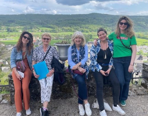 Comment dire l’émotion de mener ce pèlerinage ensemble, en reconstituant le puzzle de nos racines ? Étonnamment, malgré les fardeaux et les drames du passé, cette exploration nous a allégés et rapprochés. Savoir d’où l’on vient, reconnaître les épreuves de celles et ceux qui nous ont transmis leur flamme, honorer leur tombe et leur mémoire, recevoir ainsi leur bénédiction invisible, cela donne de la force, de la paix – et même de la joie. Tellement bon de se parler comme jamais, tout en prenant le temps de se balader, rire, cuisiner, trinquer, immortaliser les instants par quelques photos où s’affichent nos sourires… Comme sur cette image où l’on voit ma cousine, ma tante, ma mère, ma sœur et moi.