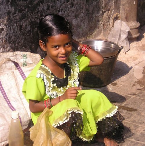 Et puis, il y a Geeta. T-shirt blanc et short rouge. Minuscule et pourtant âgée de 3 ans. Qui a cessé de manger pendant 5 jours parce qu’une Américaine, après quatre mois, était repartie chez elle. A quoi bon lui donner de l’amour si c’est pour l’abandonner ensuite ? Geeta parle hindi. Je lui ai tourné autour tous les jours. Je voulais lui parler. Je n’osais pas, j’avais peur de lui faire mal, à mon tour. Avais-je le droit d’entrer dans sa vie ? Finalement, je ne sais trop comment je me suis retrouvée en face de son lit, sa main dans la mienne.